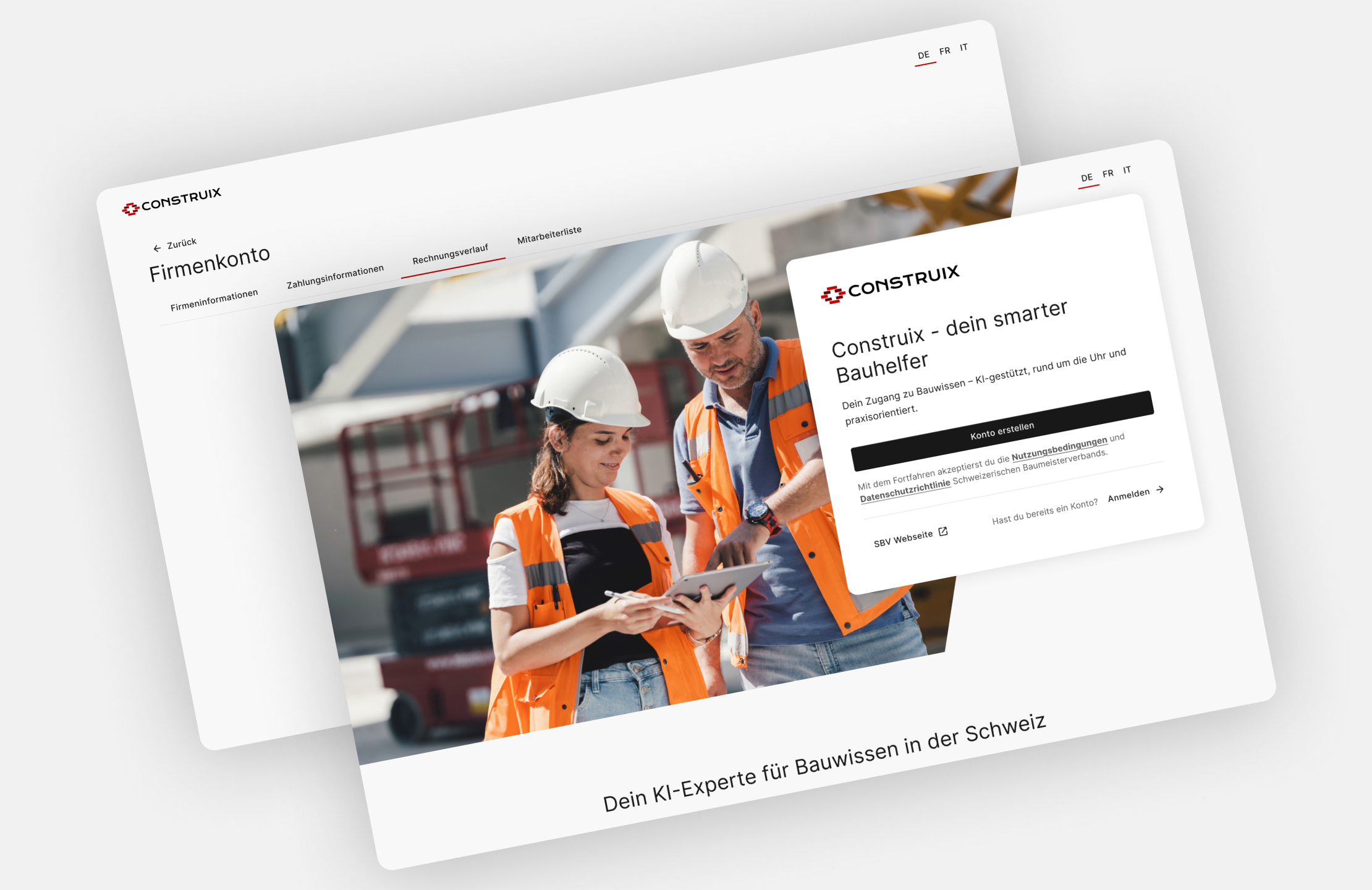 Construix’s logo was carefully designed to represent its Swiss construction context by subtly incorporating the Swiss cross within a brick pattern. With its modern design, the logo is crafted to endure and stand out from competing tools.